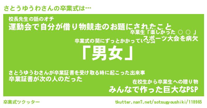 | 男性向けラノベタイトル風あだ名 | 『さとうゆうわの憂鬱』 |