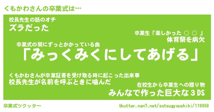 | ヘコむあだ名 | 『くもにー』『つくし』『くもっ子』 |