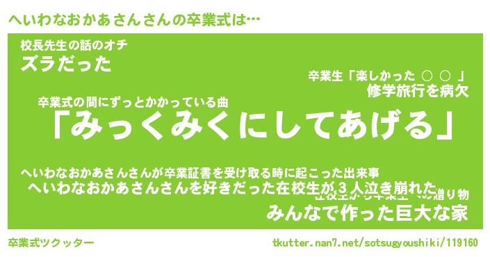 | 胡散臭い通販商品みたいなあだ名 | 『必ず成功するブレスレット…その名も「へいわなおかあさん」』 |