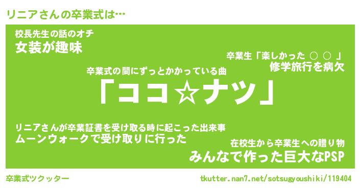 | ヘコむあだ名 | 『リニふぇ~』『豆乳』『リニお』 |
