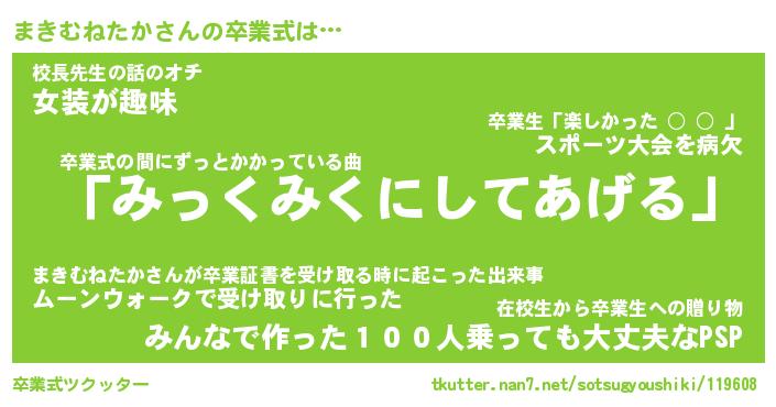 | 男性向けラノベタイトル風あだ名 | 『まきむねたかの憂鬱』 |