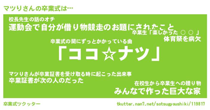 | 2回繰り返すあだ名 | 『マツマツ』『ママツツ』『こそこそ』 |