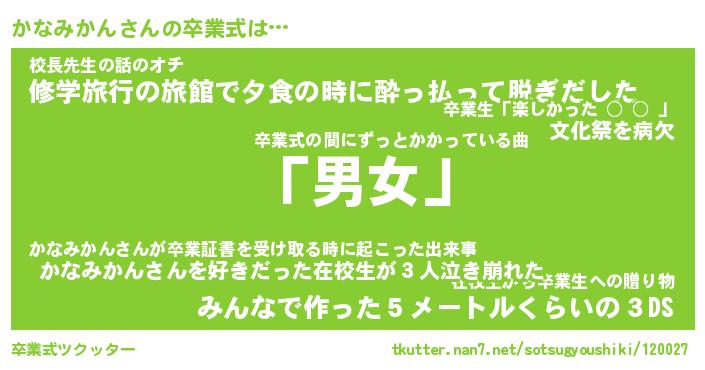 | 伝説のあだ名 | 『伝説のスナイパーかなみかん』 |