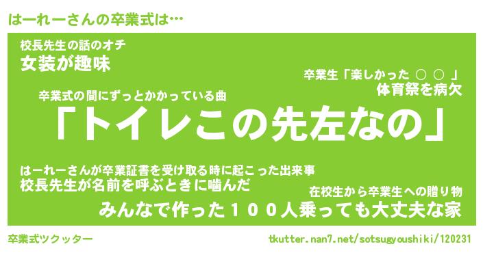 | 意味不明あだ名 | 『ペロリンはーれー』『永久保存はーれー』 |