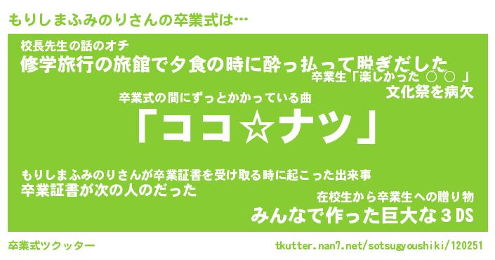 | 胡散臭い通販商品みたいなあだ名 | 『モテモテ間違いなしブレスレット…その名も「もりしまふみのり」』 |