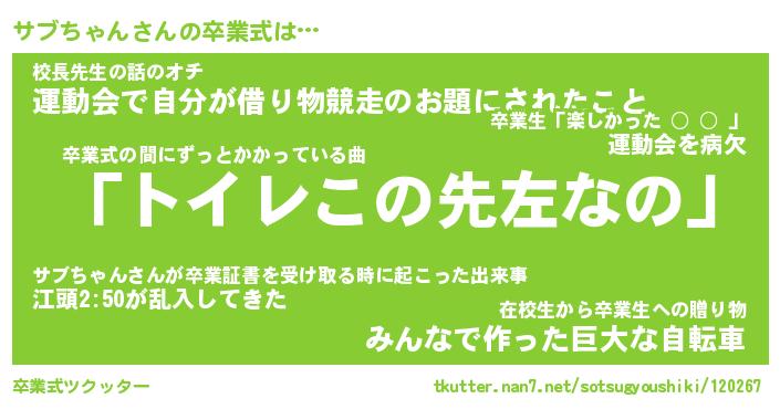 | 男性向けラノベタイトル風あだ名 | 『サブちゃんの憂鬱』 |