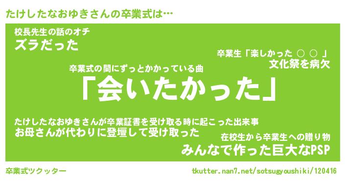 | ヘコむあだ名 | 『たけにゅー』『なまこ酢』『たけお』 |