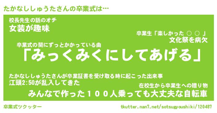 | 伝説のあだ名 | 『伝説のスナイパーたかなししゅうた』 |