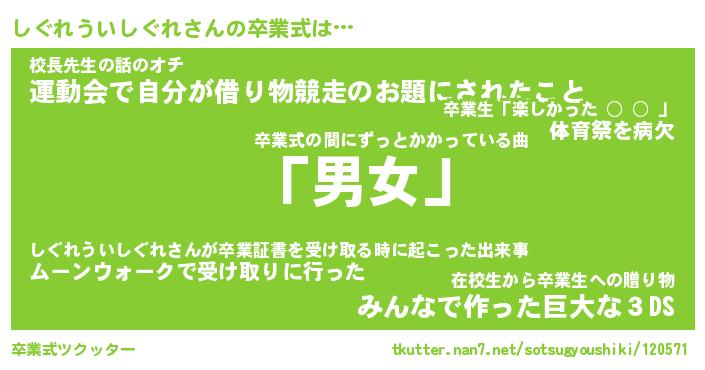 | ヘコむあだ名 | 『しぐにゅー』『つくし』『しぐを』 |