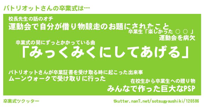| ヘコむあだ名 | 『パトもー』『つくし』『パトお』 |
