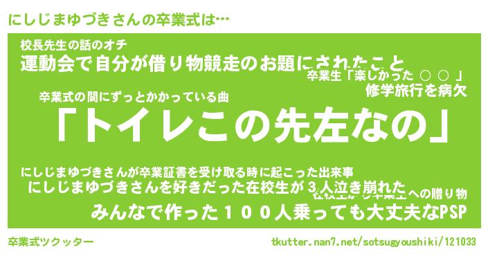| 胡散臭い通販商品みたいなあだ名 | 『必ず成功するブレスレット…その名も「にしじまゆづき」』 |