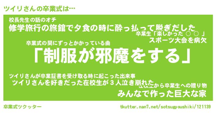 | ヘコむあだ名 | 『ツイにー』『豆乳』『ツイお』 |