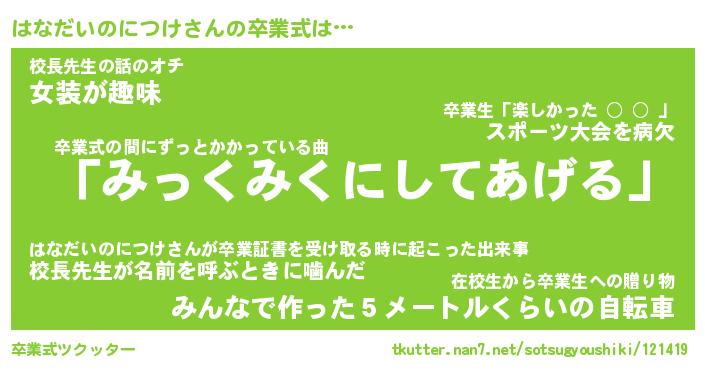 | 胡散臭い通販商品みたいなあだ名 | 『必ず成功するブレスレット…その名も「はなだいのにつけ」』 |