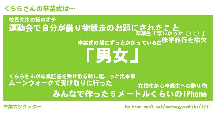 | 伝説のあだ名 | 『伝説のスナイパーくらら』 |