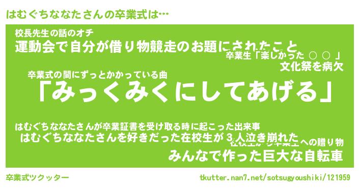 | 胡散臭い通販商品みたいなあだ名 | 『必ず成功するブレスレット…その名も「はむぐちななた」』 |