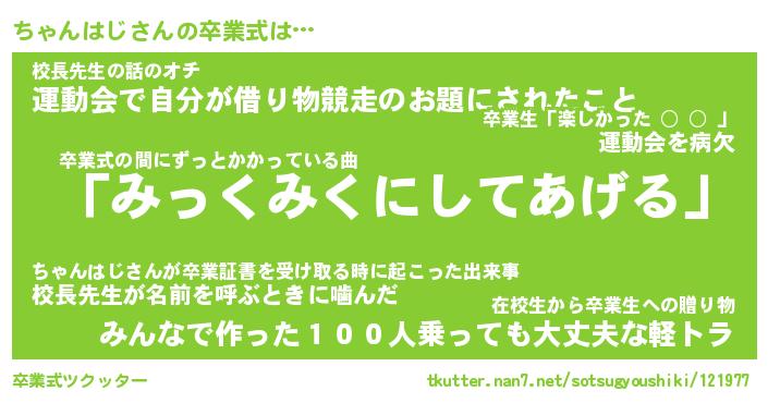 | 胡散臭い通販商品みたいなあだ名 | 『必ず成功するブレスレット…その名も「ちゃんはじ」』 |