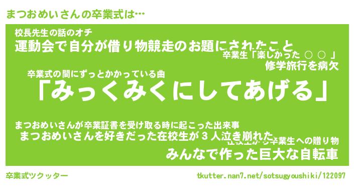 | 胡散臭い通販商品みたいなあだ名 | 『必ず成功する霊験あらたかなお札…その名も「まつおめい」』 |