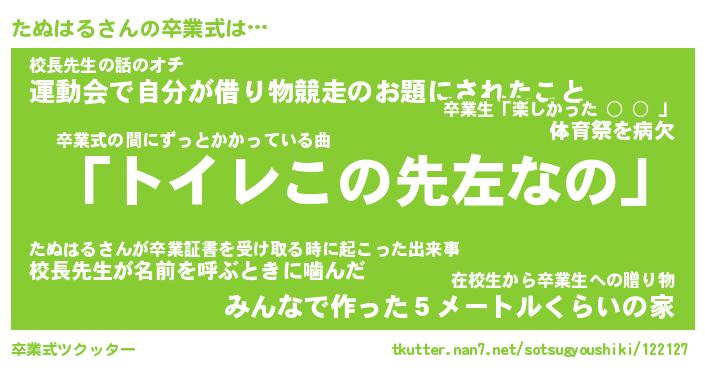 | 胡散臭い通販商品みたいなあだ名 | 『必ず成功するブレスレット…その名も「たぬはる」』 |
