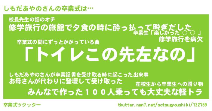 | 伝説のあだ名 | 『伝説のスナイパーしもだあやの』 |