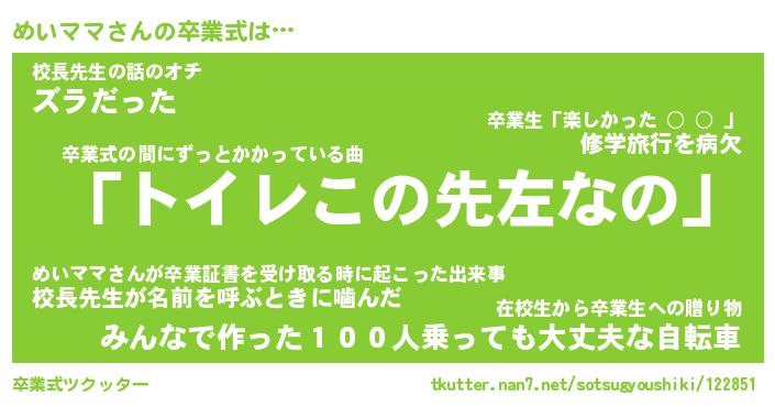 | 胡散臭い通販商品みたいなあだ名 | 『必ず成功するブレスレット…その名も「めいママ」』 |