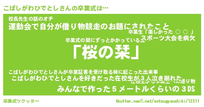 | ヘコむあだ名 | 『こばふぇ~』『つくし』『こばっ子』 |