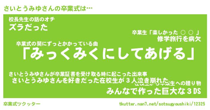 | 胡散臭い通販商品みたいなあだ名 | 『必ず成功するブレスレット…その名も「さいとうみゆ」』 |