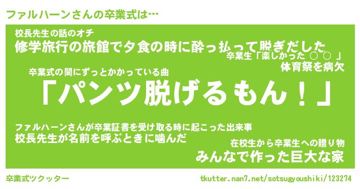 | ピコ太郎風あだ名 | 『フコ十郎』『ピフ次郎』『ファ三郎』 |