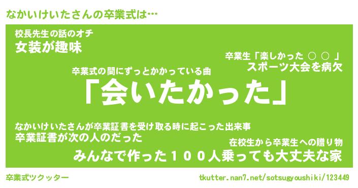 | 男性向けラノベタイトル風あだ名 | 『ナカイケイタアートオンライン』 |