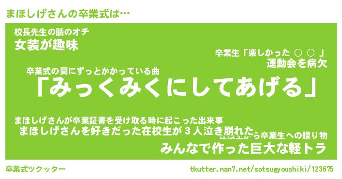 | 胡散臭い通販商品みたいなあだ名 | 『必ず成功するブレスレット…その名も「まほしげ」』 |