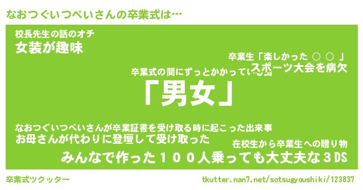 | 男性向けラノベタイトル風あだ名 | 『なおつぐいつぺいの憂鬱』 |