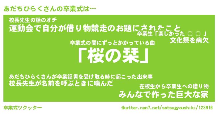 | 肩書あだ名 | 『あだちひらく社長』『あだちひらく団長』 |