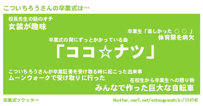 | ヒーロー風カッコイイあだ名 | 『スーパーコツイチロウ』『炎刃騎士コツ』 |
