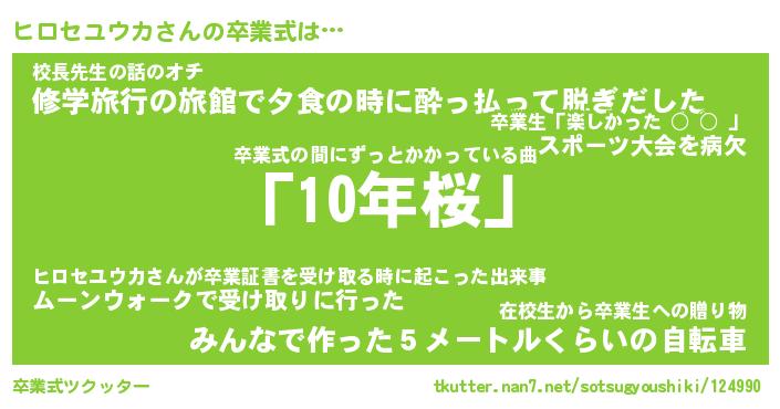 | 伝説のあだ名 | 『封印されしスナイパーヒロセユウカ』 |