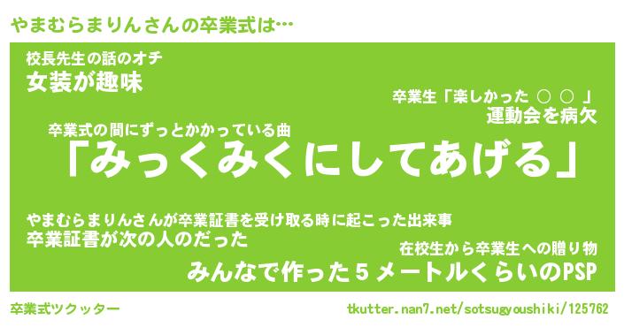 | 胡散臭い通販商品みたいなあだ名 | 『必ず成功する霊験あらたかなお札…その名も「やまむらまりん」』 |
