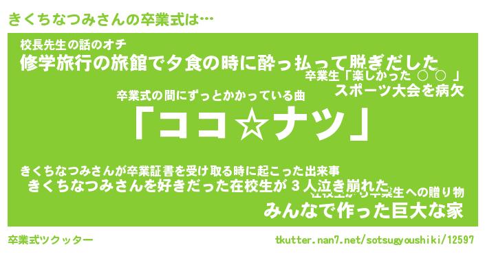 | 恥ずかしいあだ名 | 『プリティーきくちなつみ』『きくっちょ』 |