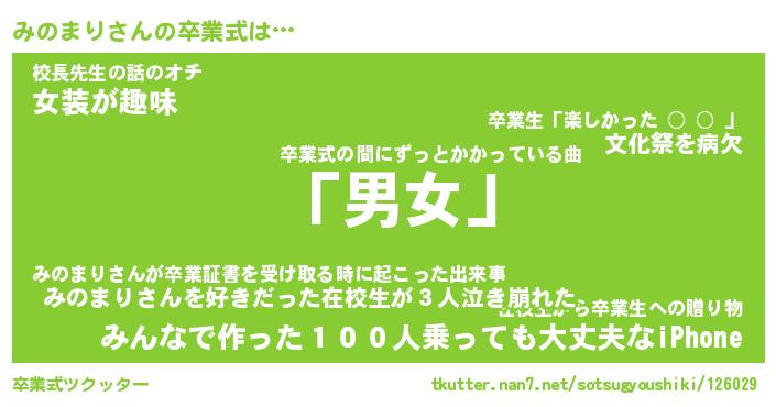| 伝説のあだ名 | 『伝説のスナイパーみのまり』 |