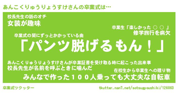| 男性向けラノベタイトル風あだ名 | 『あんこくりゅうりょうすけの憂鬱』 |