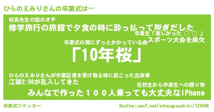 | 伝説のあだ名 | 『封印されしスナイパーひらのえみり』 |