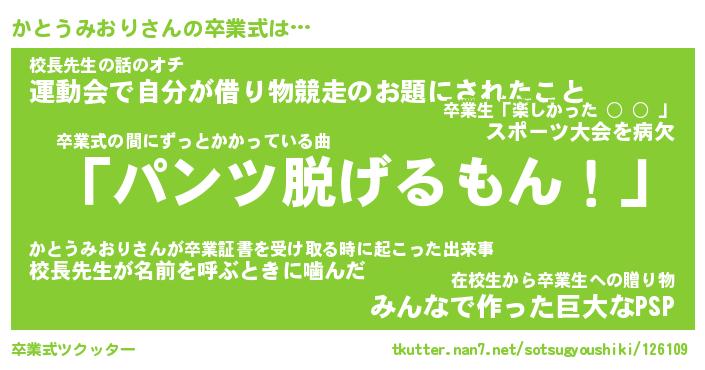 | ヘコむあだ名 | 『かとにー』『豆乳』『かとを』 |