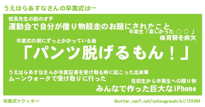 | 胡散臭い通販商品みたいなあだ名 | 『モテモテ間違いなしブレスレット…その名も「うえはらあすな」』 |
