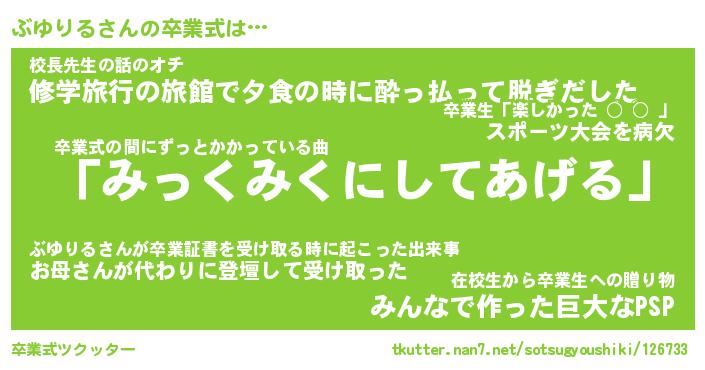 | 伝説のあだ名 | 『伝説のスナイパーぶゆりる』 |