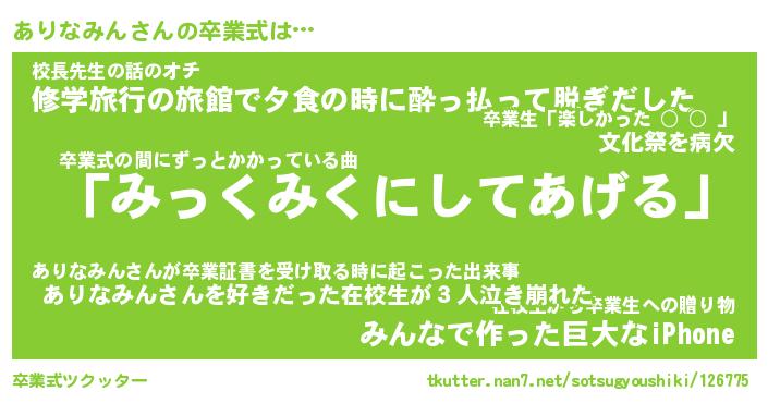 | 胡散臭い通販商品みたいなあだ名 | 『必ず成功するブレスレット…その名も「ありなみん」』 |