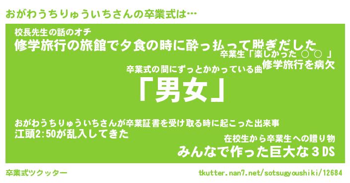| 男性向けラノベタイトル風あだ名 | 『おがわうちりゅういちの憂鬱』 |