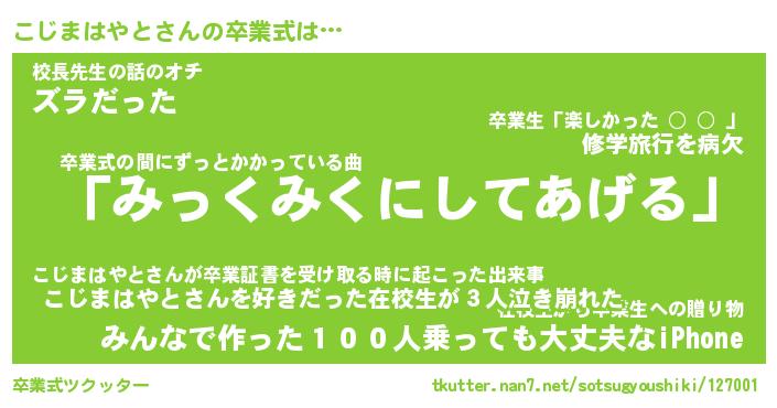 | 胡散臭い通販商品みたいなあだ名 | 『必ず成功するブレスレット…その名も「こじまはやと」』 |