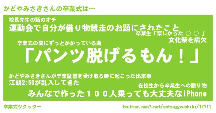 | ヘコむあだ名 | 『かどにゅー』『つくし』『かどお』 |