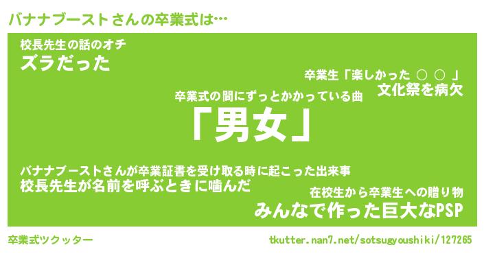 | 男性向けラノベタイトル風あだ名 | 『バナナブーストの憂鬱』 |