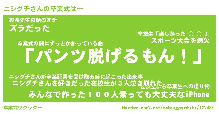| 意味不明あだ名 | 『ペロリンニシグチ』『永久保存ニシグチ』 |