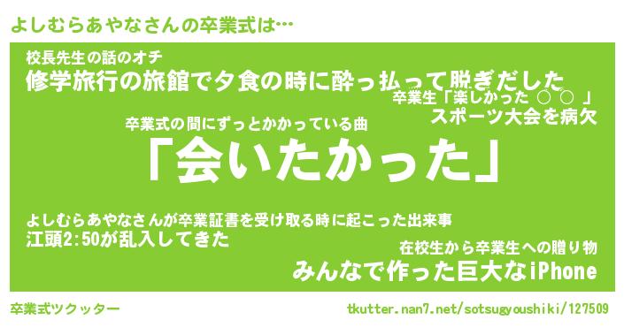 | 伝説のあだ名 | 『不死鳥のスナイパーよしむらあやな』 |