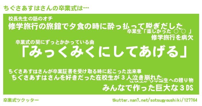 | 胡散臭い通販商品みたいなあだ名 | 『必ず成功するブレスレット…その名も「ちぐさあすは」』 |