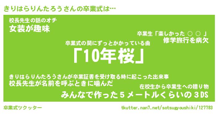 | 肩書あだ名 | 『きりはらりんたろう店長』 |